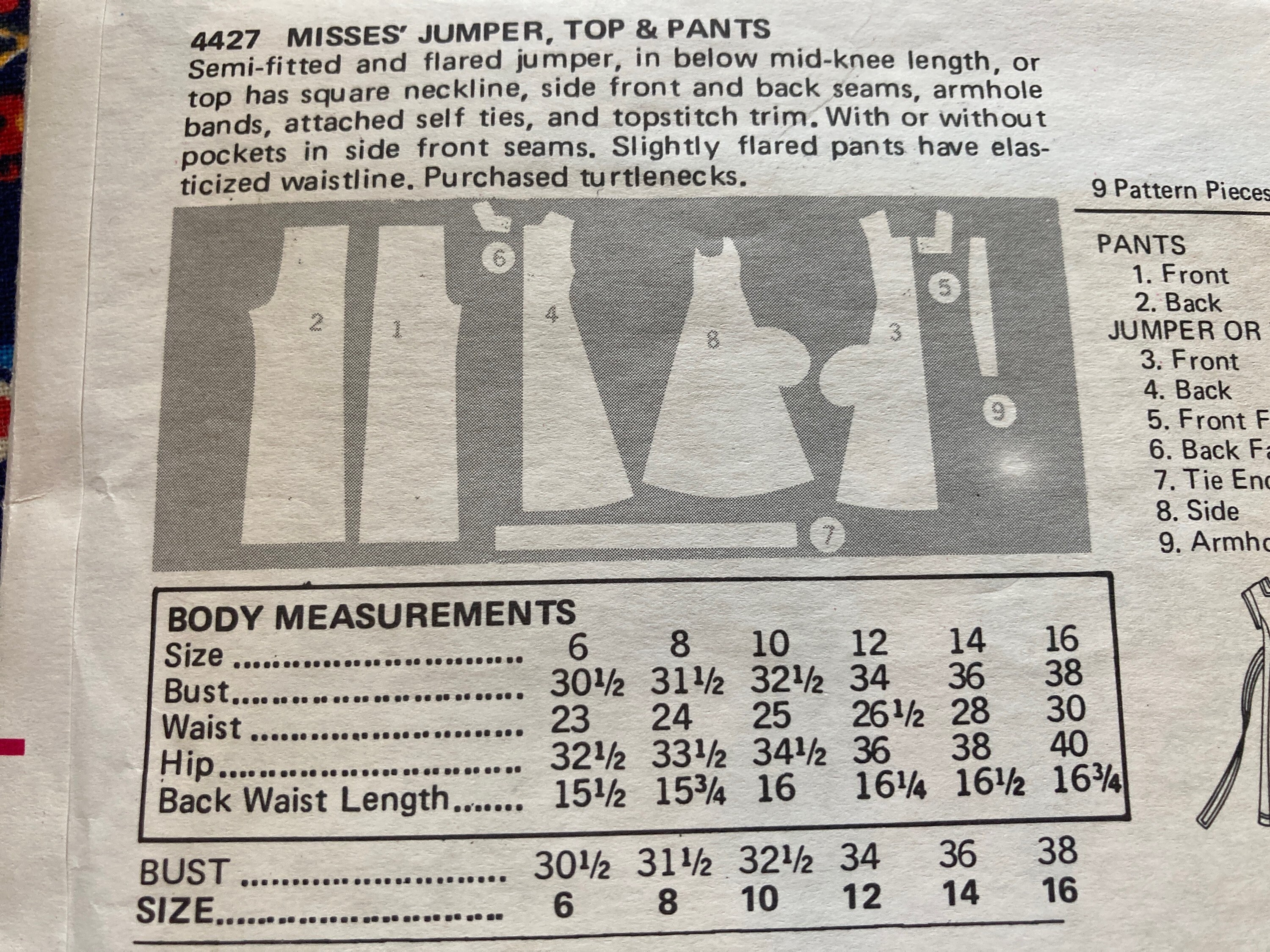 1972 Vintage Sewing Pattern B34 Top Skirt Pants 1939 Betsey Johnson Of Alley Cat The Vintage Pattern Shop